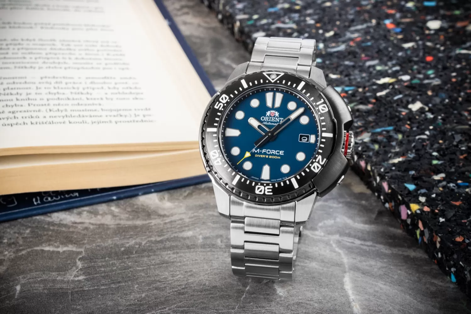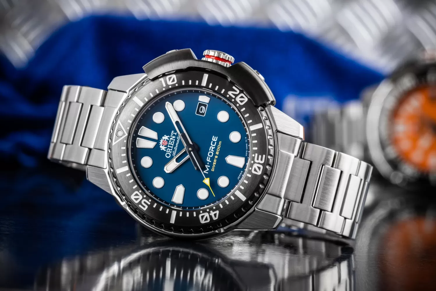 Hľadáte mechanické hodinky pre potápačov? Nové modely M-FORCE sú 200m potápačské hodinky, ich súčasťou je aj veľká skrutkovacia korunka na 3. hodine a jednosmerne otočná luneta. Novinkou pre tieto modely je výrazný ochranný kryt puzdra, ktorý chráni skrutkovaciu korunku a lunetu pred vonkajším tlakom alebo nárazmi. Ciferník je chránený zafírovým sklíčkom s antireflexnou vrstvou, má vyrazené indexy pre trojrozmerný vzhľad, potiahnuté silnou luminiscenciou ručičiek a indexov.