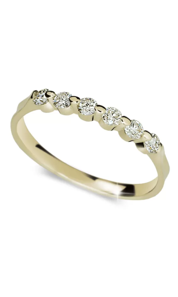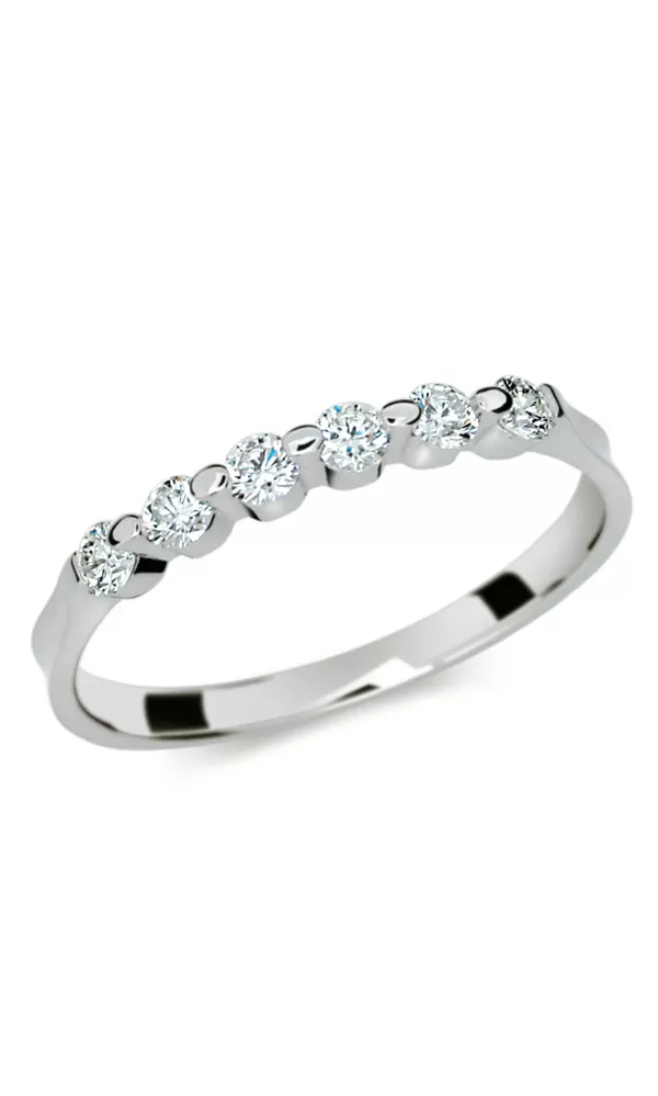 Dámsky prsteň vyrobený z bieleho štrnásťkarátového zlata rýdzosti 585/1000 v lesklej povrchovej úprave so šiestimi okrúhlymi diamantmi briliantového brusu.