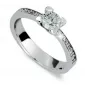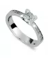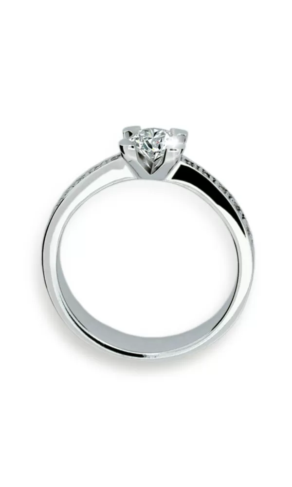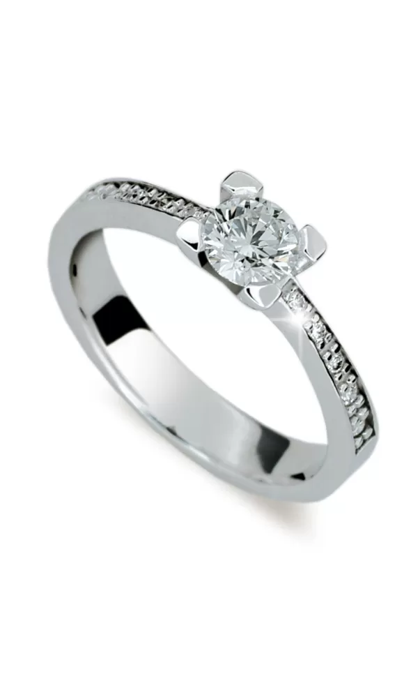 Dámsky prsteň vyrobený z bieleho štrnásťkarátového zlata 585/000 v lesklej povrchovej úprave s desiatimi menšími a jedným väčším diamantom.
