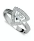 Dámsky prsteň vyrobený z bieleho štrnásťkarátového zlata rýdzosti 585/1000 v lesklej povrchovej úprave s jedným väčším diamantom a tridsiatimi… Celý popis