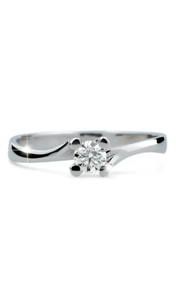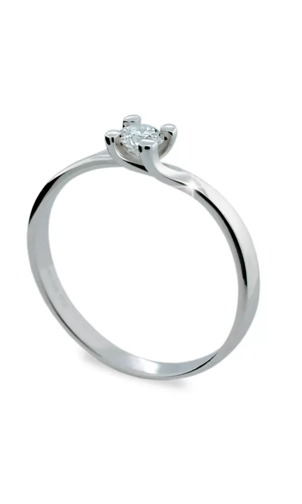 Zásnubný prsteň vyrobený z bieleho štrnásťkarátového zlata 585/1000 v lesklej povrchovej úprave s jedným okrúhlym diamantom briliantového brusu vsadeným do štyroch krapien Vnútornú rytinu Vám do prsteňa zhotovíme ZADARMO!