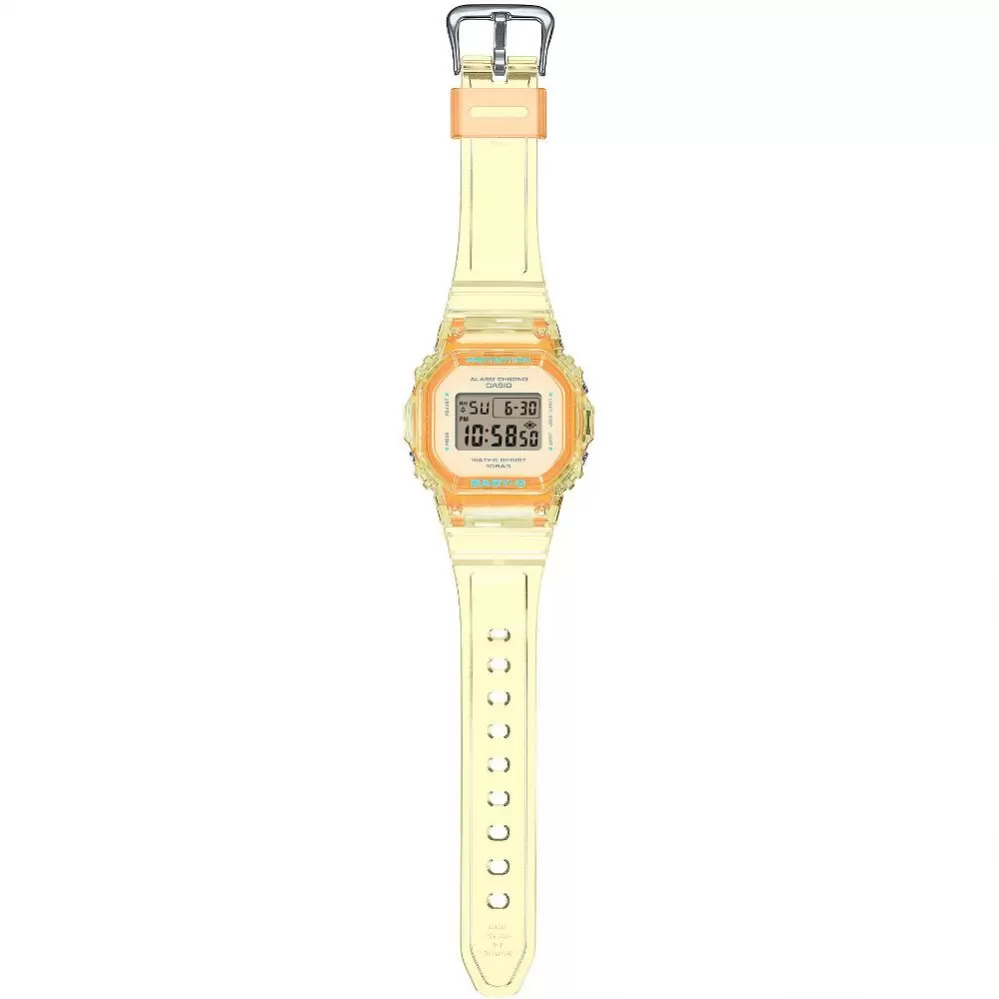 Jasné, svieže a hravo priesvitné – perfektné letné BABY-G BGD-565SJ-9ER, ktoré sa hodia k vášmu aktívnemu životu. Táto novinka v podobe kompaktnej BGD-565 sa vyznačuje ikonickým rámom a opaskom z čírej živice, vďaka čomu presvitá jasne tónovaná živica stredového puzdra. Hodinky sú nielen cool, ale aj praktické. Hodinky sú odolné proti nárazu, ale sú tiež vodeodolné do 10 barov.