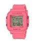 Dámske náramkové hodinky Napájanie z batérie Pohyb 3561 Priemer púzdra 39,0 mm Puzdro v tvare štvorca Plastové puzdro Ružová farba puzdra Plastový zdvih Ružová farba ťahu Digitálny ciferník Ciferník s dvanástimi indexmi Materiál skla - minerálne sklo Vodeodolný pri plávaní Dátum Stopky Odpočítavacie stopky LED podsvietenie displeja 5 budíkov Svetové časy