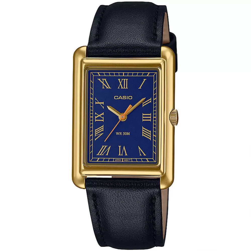 Prednosťou hodiniek CasioLTP-B165GL-2BVEF je ich striedmosť a priaznivá cena. Oceľové pozlátené puzdro hodiniek je hranatého tvaru a ciferník hodiniek v modrej farbe a je chránený minerálnym sklíčkom, ťah hodiniek je vyrobený z kože. Vďaka svojej veľkosti, 25 mm, sú vhodným variantom pre každé dámske a drobnejšie zápästie. Vodotesnosť tohto modelu je 50M.