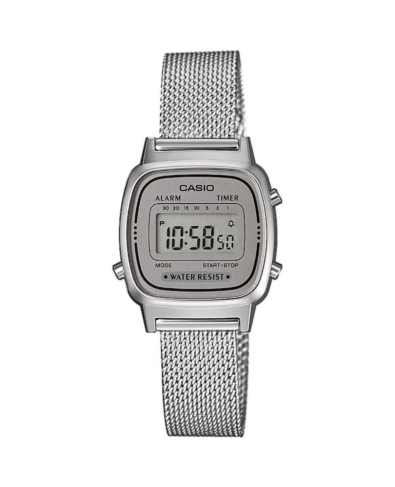 Dámske náramkové hodinky s digitálnym zobrazením času si obľúbi každá žena, ktorá hľadá decentný kúsok. Hodinky sú vyrobené v kombinácii plastového puzdra a oceľového remienka.