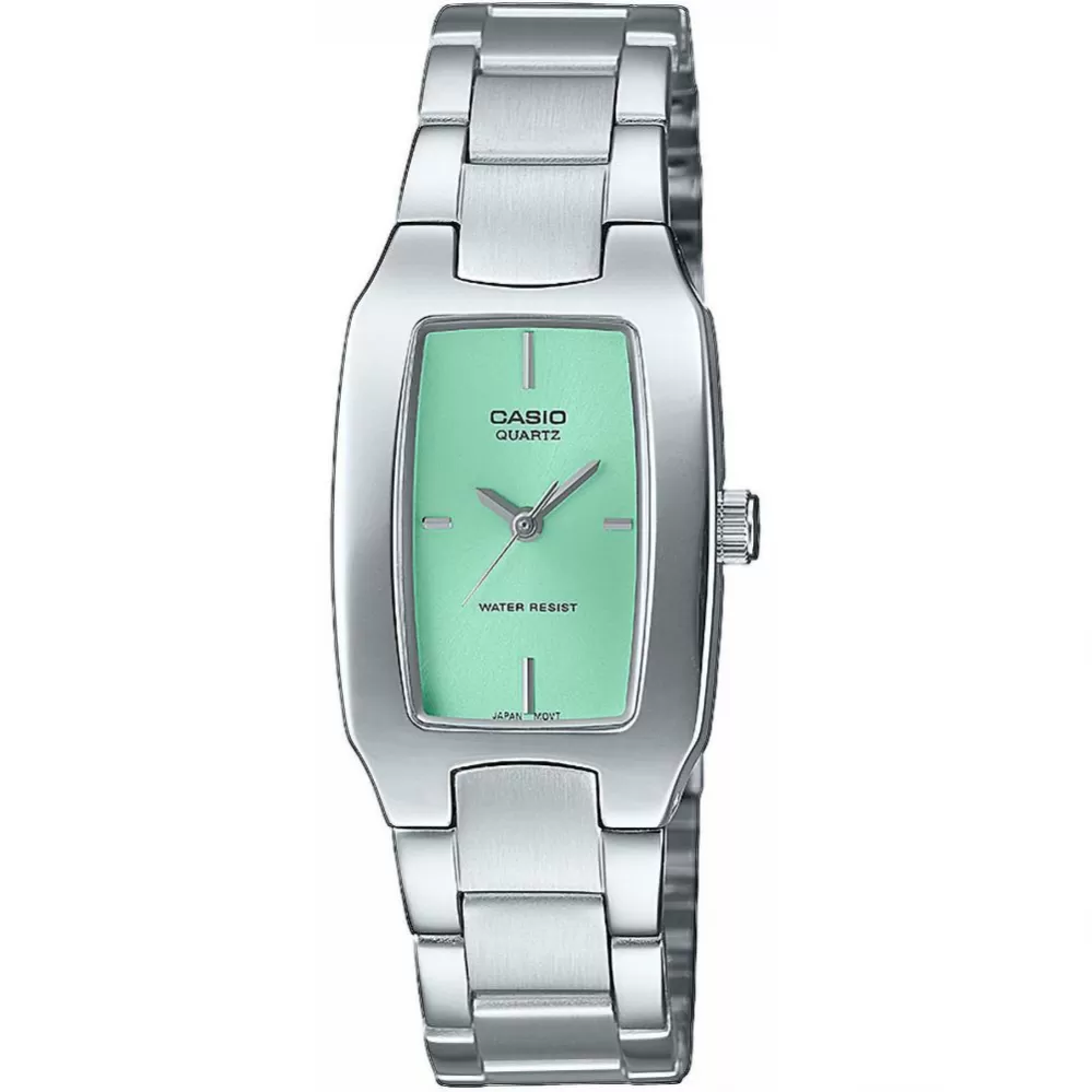 Jednoduché dámske hodinky Casio LTP-1165PA-3CEF z kolekcie Collection s prehľadným analógovým ciferníkom v zelenej farbe. Hodinky nemajú žiadne rušivé elementy na ciferníku, a preto dokonale vynikne čas.
