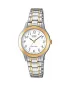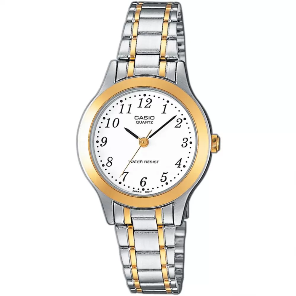 Klasické dámske hodinky Casio Collection LTP-1263PG-7BEG s prehľadným bielym ciferníkom av obľúbenom bi-color prevedení v kombinácii oceľovej farby a PVD zlatenia vo farbe žltého zlata.