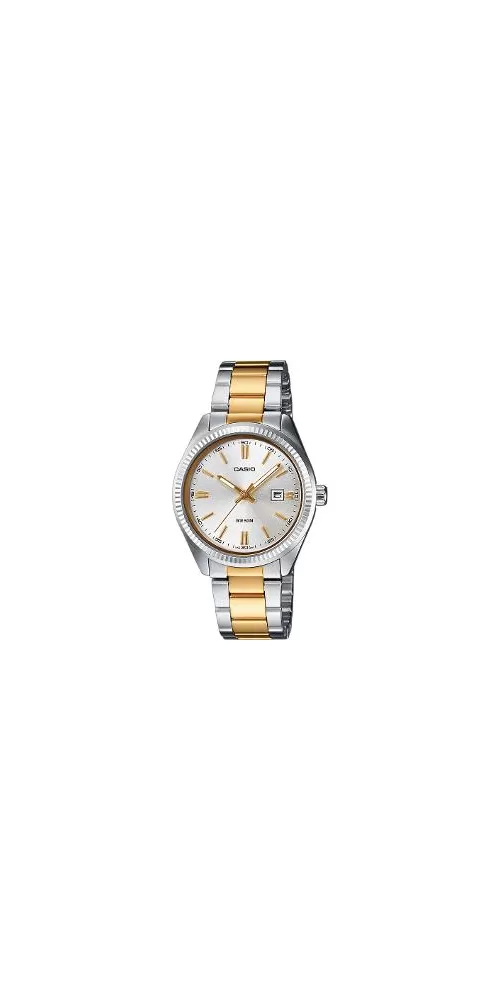 Elegantné dámske hodinky Casio LTP-1302PSG-7AVEG, ktoré dokonale vyladia váš outfit. Klasický dizajn s jednoduchým prehľadným ciferníkom v obľúbenej bi-color kombinácii striebornej a zlatej farby. p>