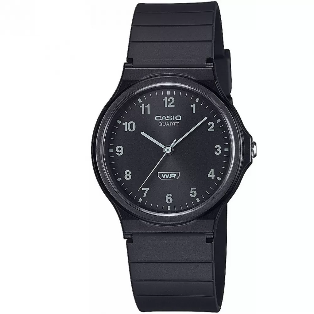 Jednoduchý model hodiniek Casio MQ-24B-1BEF z kolekcie Collection s prehľadným analógovým ciferníkom. Hodinky nemajú žiadne rušivé elementy na ciferníku, a preto dokonale vynikne čas.