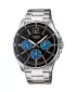 Elegantné pánske hodinky Casio MTP-1374PD-2AVEF z kolekcie Collection. Hodinky majú oceľové puzdro a oceľový remienok av kombinácii s čiernym ciferníkom a modrými subciferníkmi. Hodinky disponujú ukazovateľom dátumu a dňa v týždni a 24 hodinovým ciferníkom.
