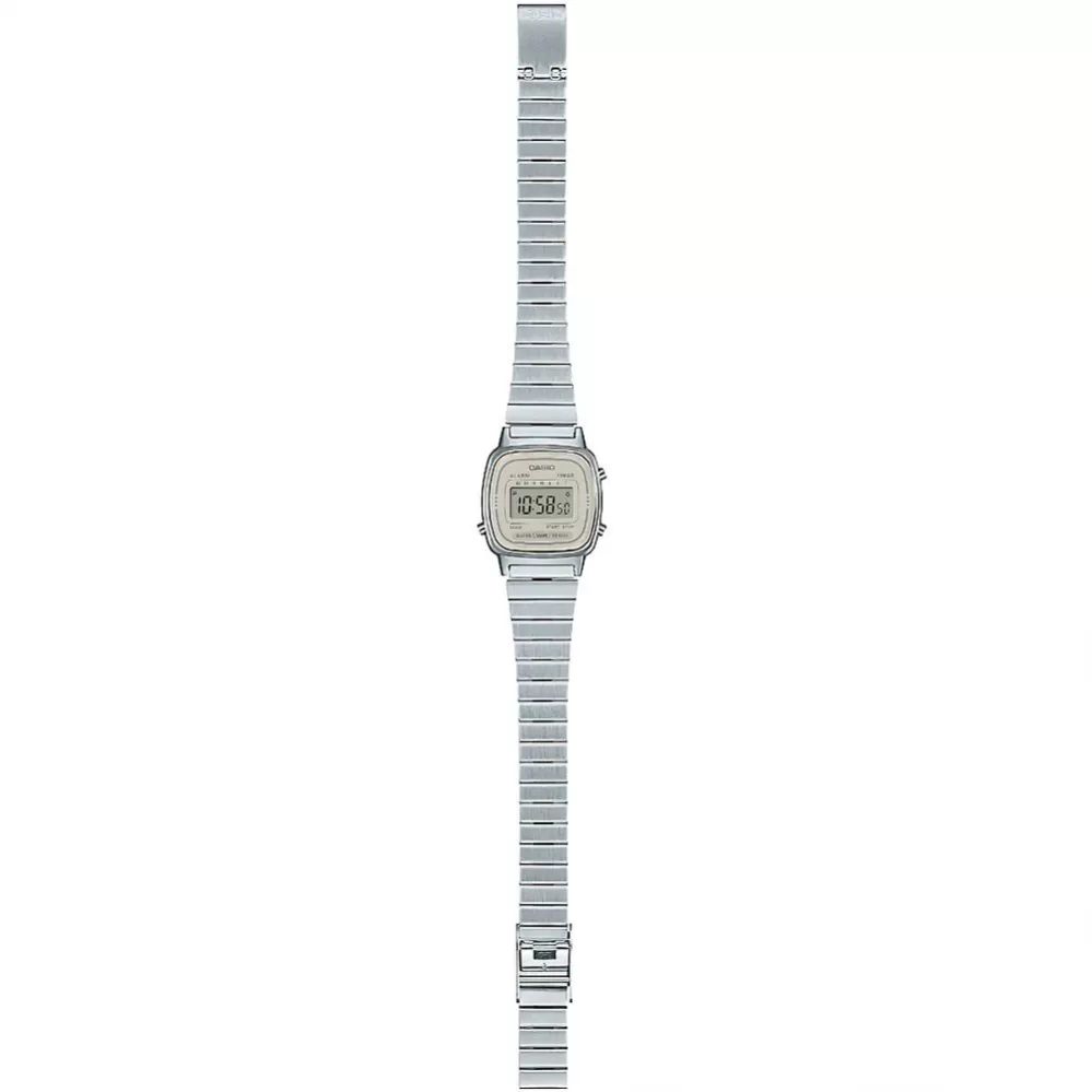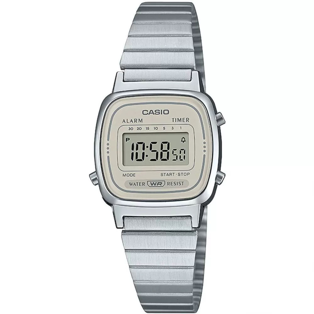 Drobné a veľmi ľahké dámske hodinky Casio LA670WEA-8AEF s digitálnym zobrazením času si obľúbi každá žena, ktorá hľadá decentný kúsok. Hodinky sú vyrobené v kombinácii plastového puzdra a oceľového remienka. Hodinky disponujú funkciami ako sú stopky, budík a ukazovateľ dátumu.
