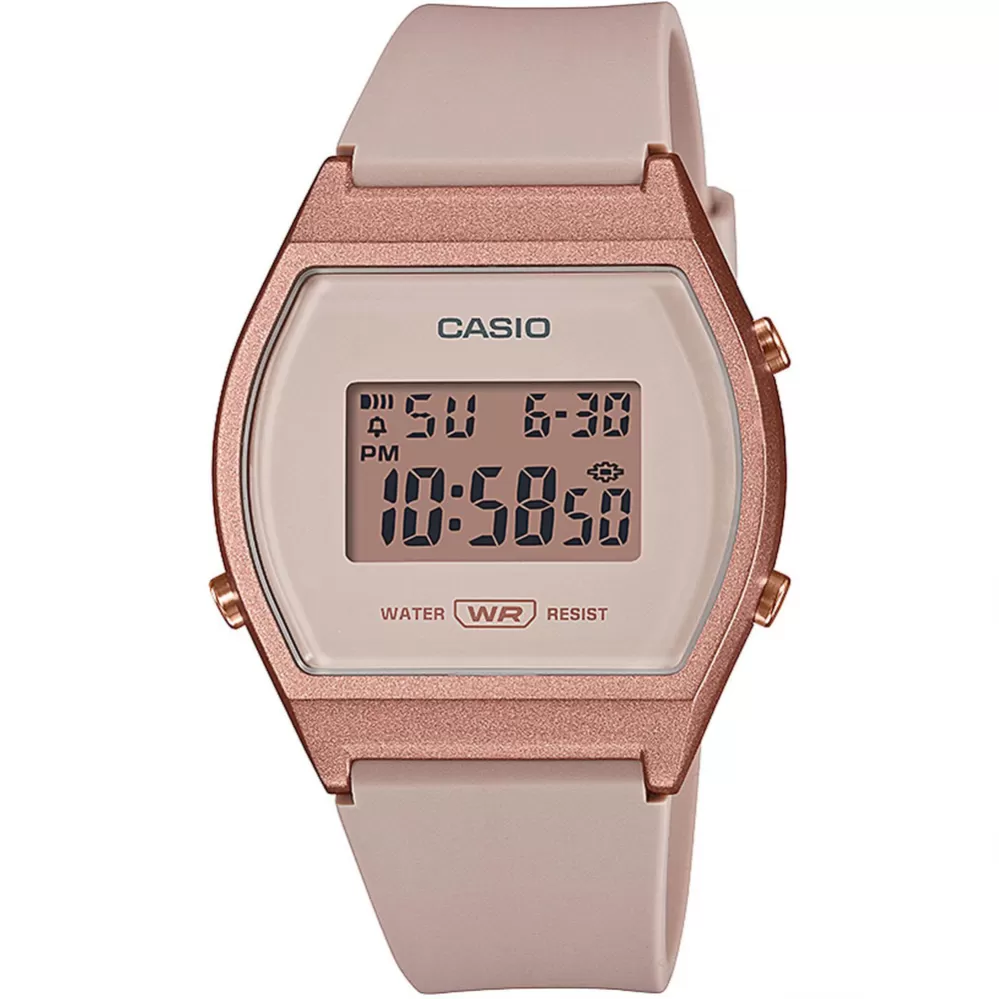 Dámsky model hodiniek Casio vyrobený zo živice, ktorá dodáva hodinkám výnimočnú ľahkosť. Hodinky sú veľmi príjemné na celodenné nosenie. Navyše design vás zaručene zaujme a to oválnym tvarom puzdra so štýlovým remienkom.