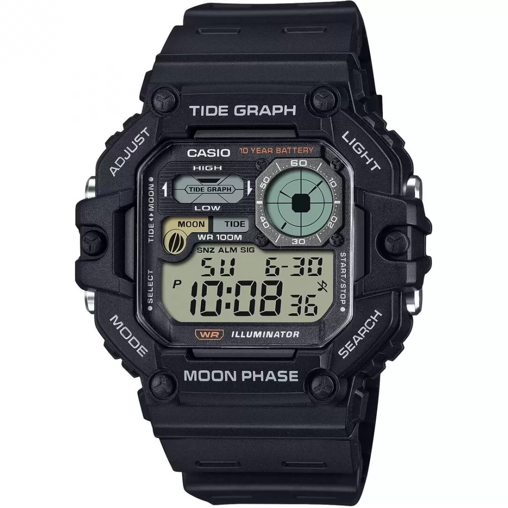 Casio WS-1700H-1AVEF zobrazuje čas, dátum, deň v týždni, stopky, budík a odpočet. Kalendár je pri hodinkách plne automatický. Využiť ďalej môžete funkcie ako je graf prílivu a odlivu či fázy mesiaca.