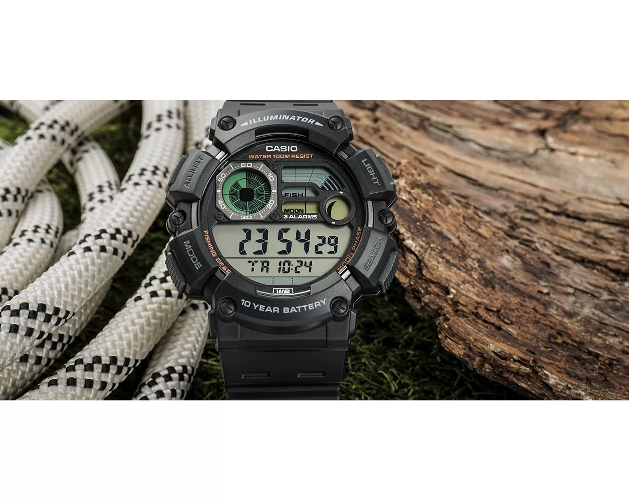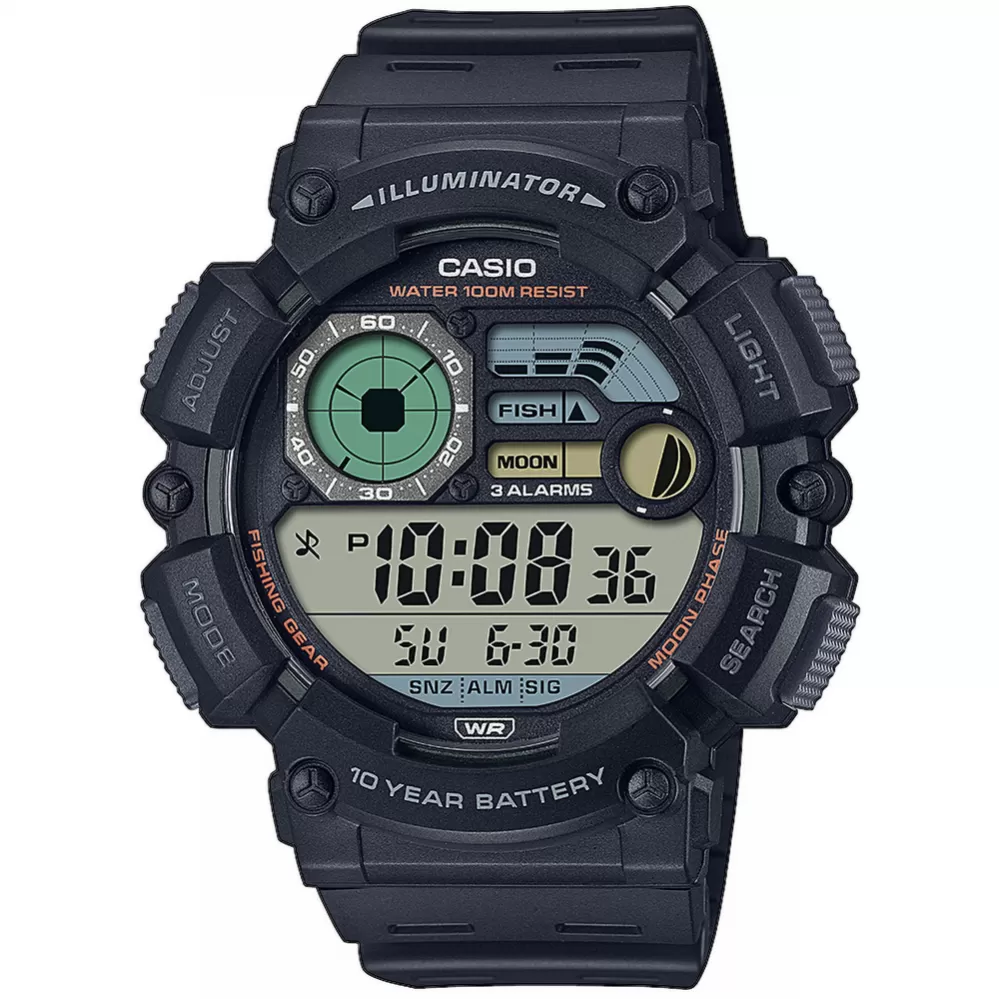 Perfektný model hodiniek pre rybárov! Nájdete tu funkcie ako je rybársky mód - mesačnú fázu aj či je vhodné vyraziť na ryby uvidíte hneď v hornej časti displeja. Nechýbajú samozrejme ani ostatné funkcie ako sú stopky, alarmy, automatický kalendár, LED podsvietenie a navyše výdrž batérie je až 10 rokov vďaka úspornému LCD displeju.