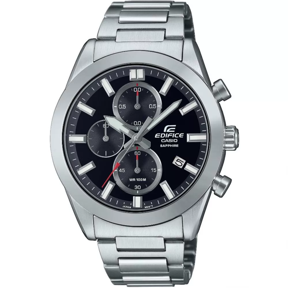Dynamický vzhľad, športový dizajn, prepracovaný a prehľadný ciferník s chronografmi. To ponúka tento model hodiniek z radu EDIFICIE od značky Casio. Hodinky disponujú ukazovateľom dátumu a funkciou stopiek. Puzdro aj remienok sú vyrobené z ocele, ktorá vyniká svojou farebnou stálosťou a vysokou odolnosťou.