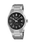 Pánske náramkové hodinky Automatický pohon Strojček 5766 Priemer puzdra 38,0 mm Puzdro v tvare kruhu Oceľové púzdro Strieborná farba púzdra Oceľový ťah Strieborná farba ťahu Ručičkový ciferník Čierna farba ciferníka Ciferník s dvanástimi indexmi Materiál skla - zafírové sklo Odolné proti vode počas plávania Dátum