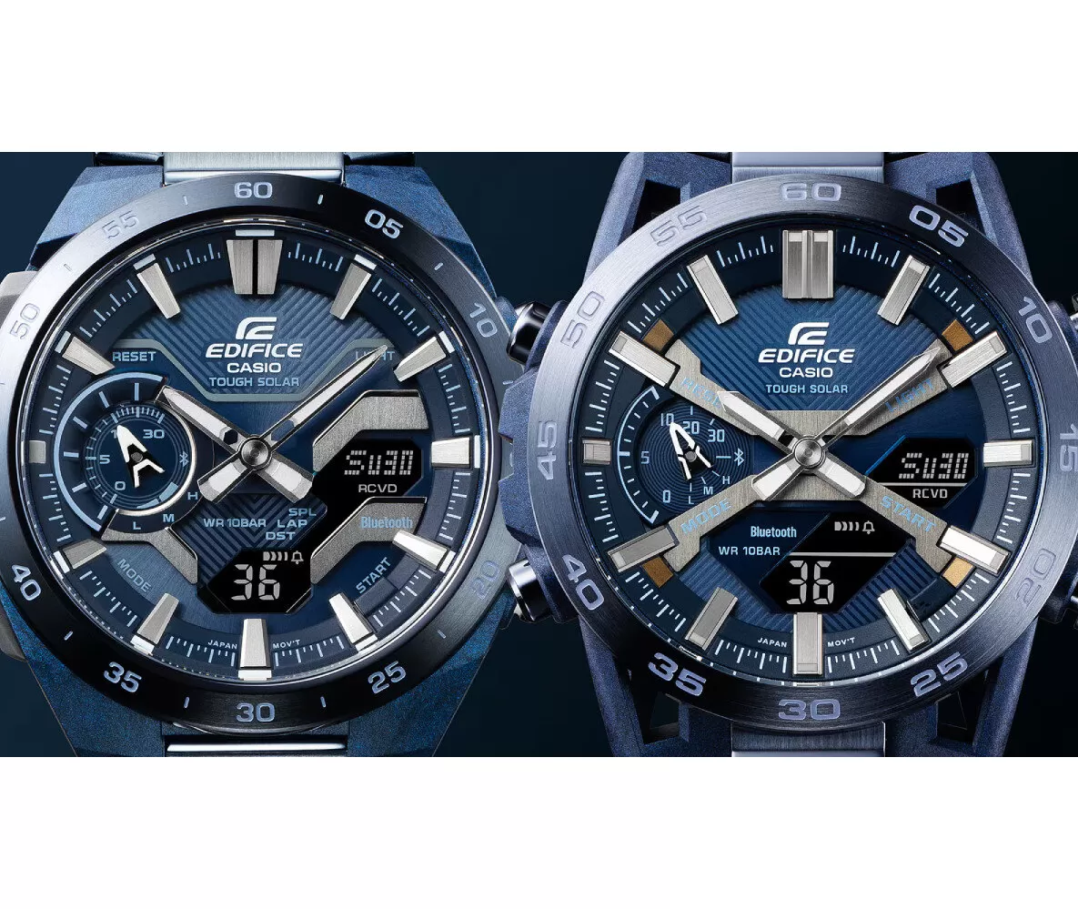 Casio EDIFICE ECB-2200CB-2AEF Windflow sú pánske športové hodinky s analógovým a digitálnym číselníkom a množstvom praktických prvkov zabalených v atraktívnom, moderne vyzerajúcom puzdre, novo kombinujúcom uhlíka a ocele.