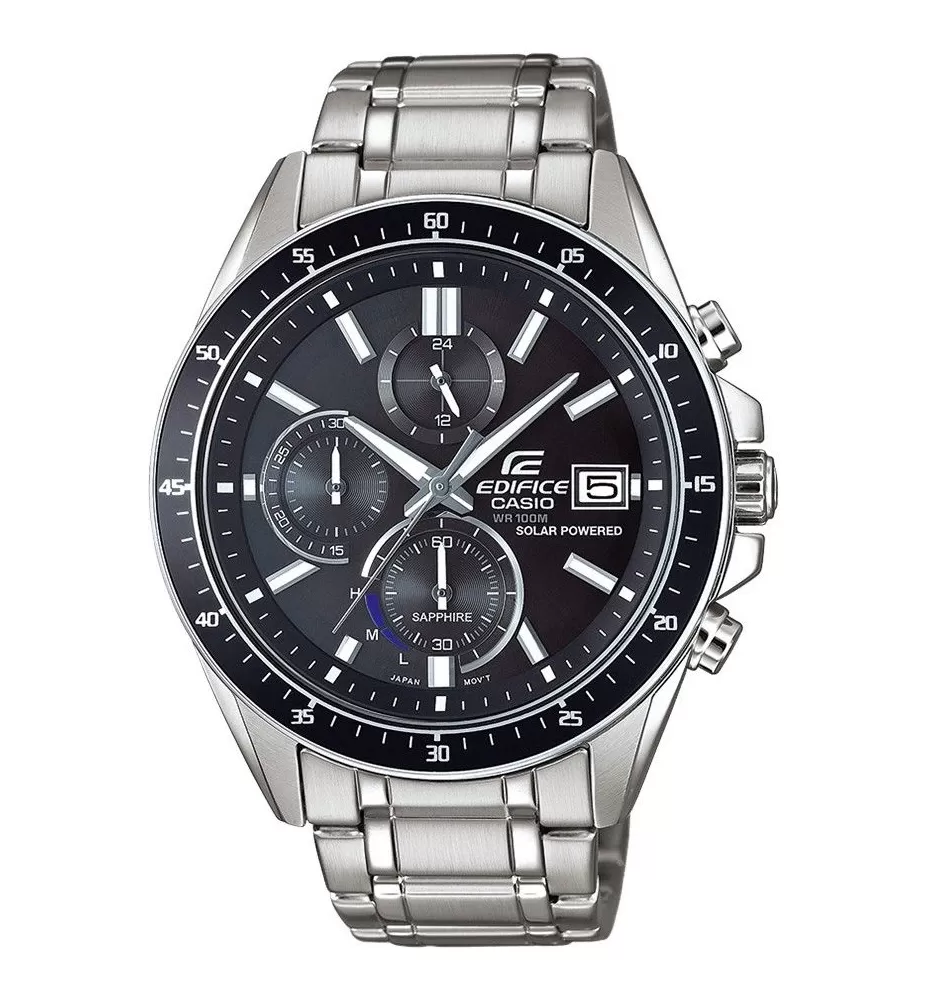 Štýlové pánske hodinky obľúbenej značky Casio z modelového radu Edifice. Hodinky sú celé vyrobené z ocele, ktorá sa pýši vysokou odolnosťou, dlhou životnosťou a farebnou stálosťou. lesklý a čiastočne matný povrch. Ciferník hodiniek je čiernej farby ladiacej s čiernou lunetou. Hodinky budú vhodné pre všetky príležitosti. Či už sa rozhodnete ísť do divadla alebo si ísť zašportovať. Na pozícii tretej hodiny majú hodinky dátumovník a disponujú stopkami a 24 hodinovým ciferníkom.