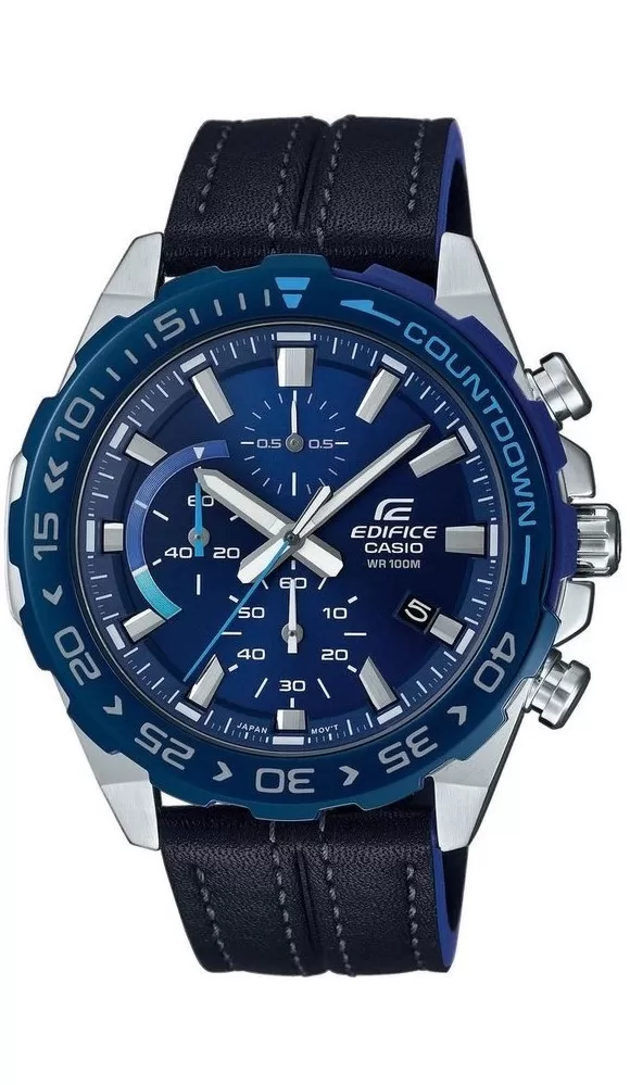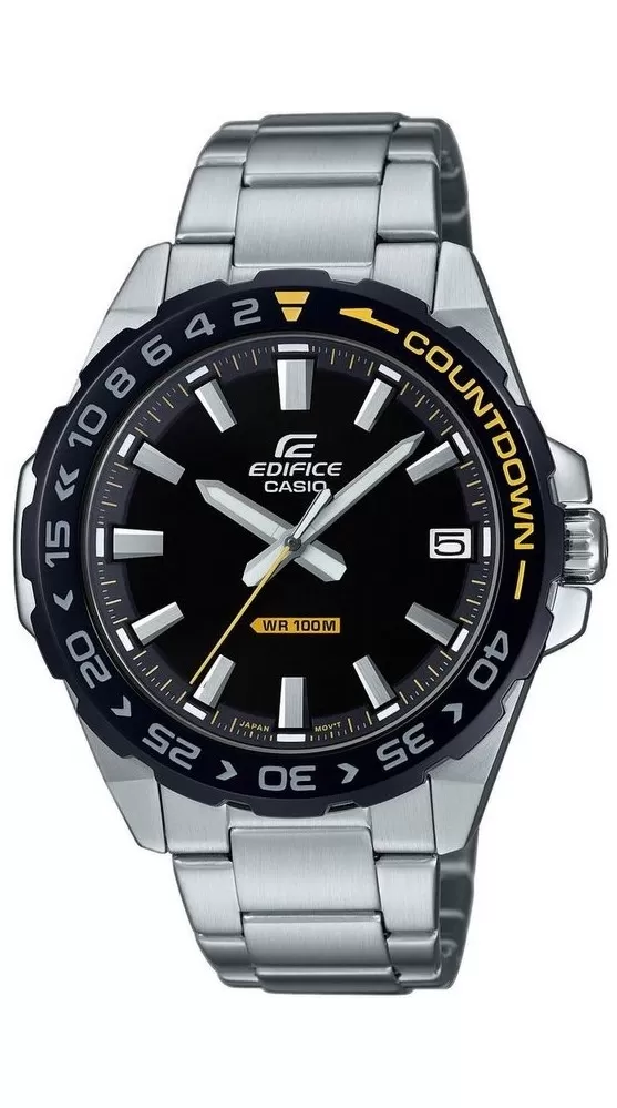 Športové pánske hodinky značky Casio z radu Edifice. Hodinky sú vyrobené z ušľachtilej nerezovej ocele. Oceľ je obľúbeným materiálom v oblasti hodinárstva a pýši sa vysokou odolnosťou, dlhou životnosťou a farebnou stálosťou. Pre lepšiu čitateľnosť sú ručičky a indexy opatrené luminiscenčnou vrstvou. Na pozícii indexu 3 je k dispozícii dátumovka.