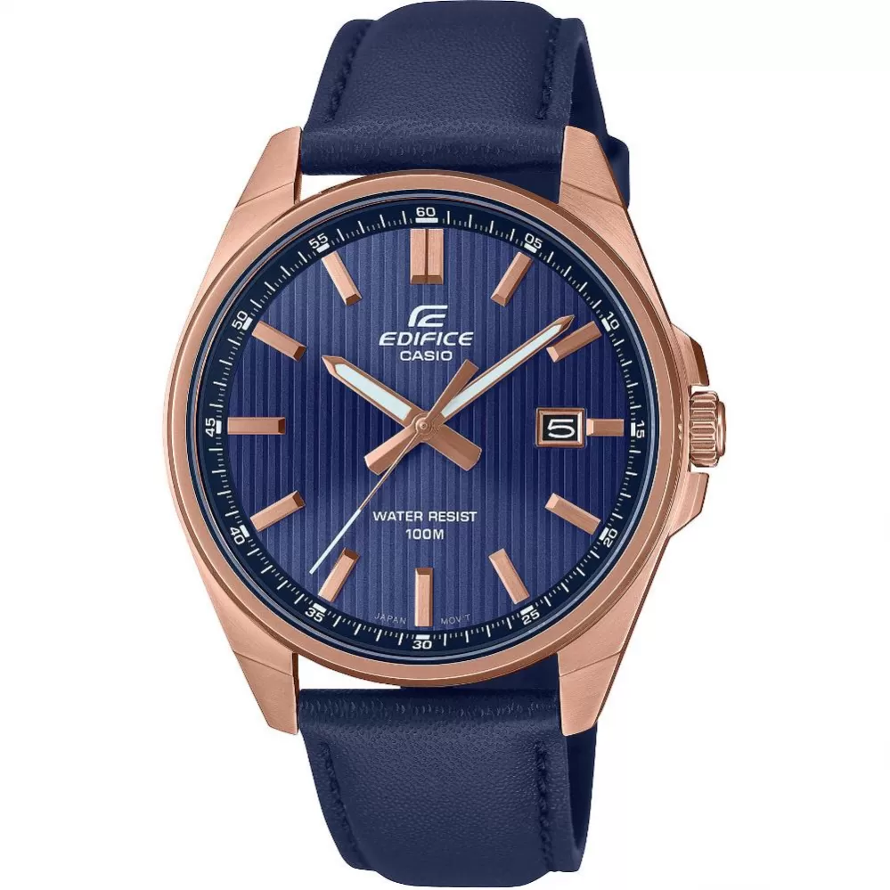 Elegantný model pánskych analógových hodiniekCasio EFV-150CL-2AVUEF z kolekcie EDIFICIE.Hodinky sú jednoduchého vzhľadu, budú sa Vám hodiť pre všetky príležitosti. Hodinky disponujú modrým koženým remienkom, oceľovým puzdrom s PVD pozlátením, vodotesnosťou 100m a ukazovateľom dátumu.