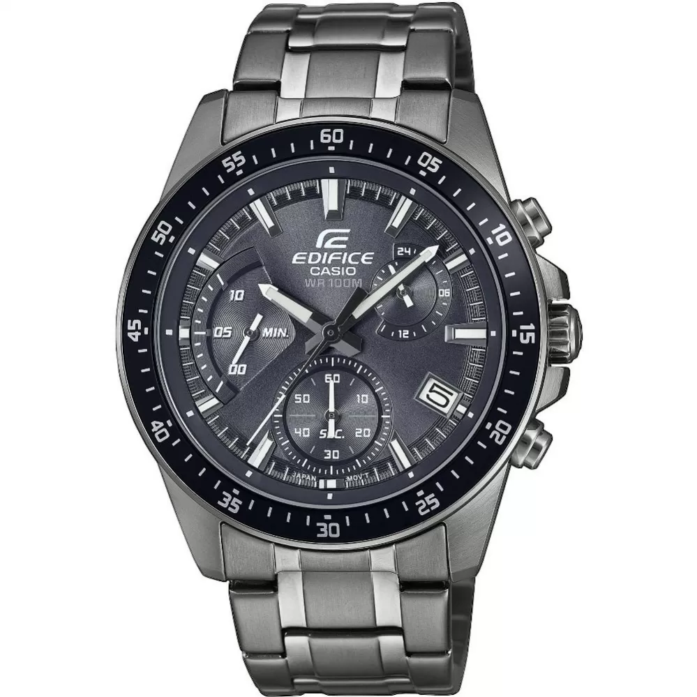 Dokonale padnúci model značky CASIO z radu EDIFÍCIA s modelovým označením EFV-540DC-1CVUEF pre mužov s puzdrom z ušľachtilej ocele v kombinácii lesklej a matné povrchové úpravy as PVD povlakom v šedej farbe. Hodinky sú vhodné na všetky príležitosti. Či už sa rozhodnete ísť do divadla, alebo si ísť zašportovať. Tmavosivý ciferník zaujme chronografy, ktoré zobrazujú stopky a 24 hodinový ciferník. Hodinky majú na pozícii štvrtej hodiny dátumovník.