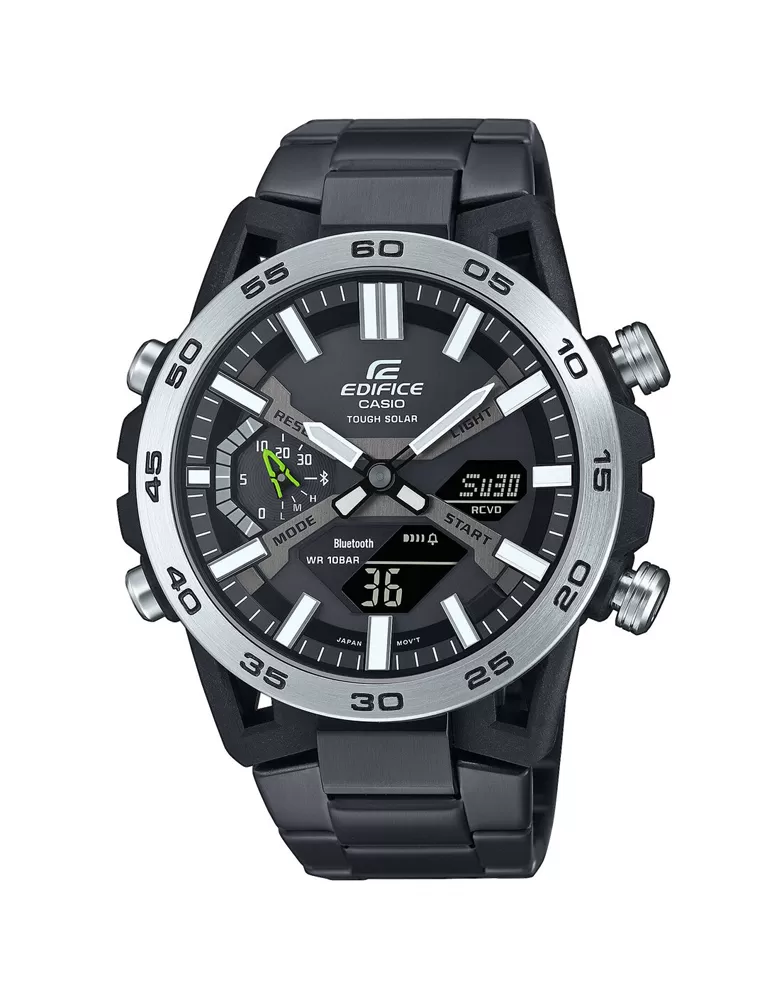 Solárne napájané hodinky Casio Edifikácie ECB-2000DD-1AEF majú kombinovaný číselník (analógový a digitálny), ktorý zobrazuje napríklad dátum, deň v týždni, budík, stopky, stav Bluetooth. Funkciou svetových časov a možnosťou voľby až z 300 svetových miest poteší tento model zaiste aj cestovateľov. Puzdro je kombináciou karbónu a ocele, náramok hodiniek je oceľový s čiernou IP úpravou povrchu. Novo použité technológie umožnili vytvoriť model s tenkým puzdrom s výškou 10,8 mm.
