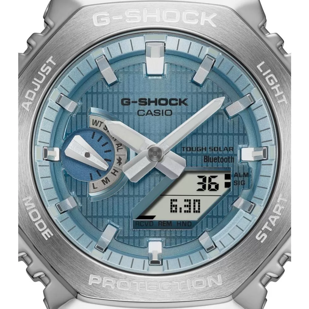 Kovovo odetá odvážnosť sa stretáva so sofistikovaným leskom v GBM-2100, ktorý poskytuje Smartphone Link cez Bluetooth® a nabíjací systém Tough Solar, to všetko v starostlivo spracovanom kovovom dizajne s ikonickým osemhranným rámčekom.