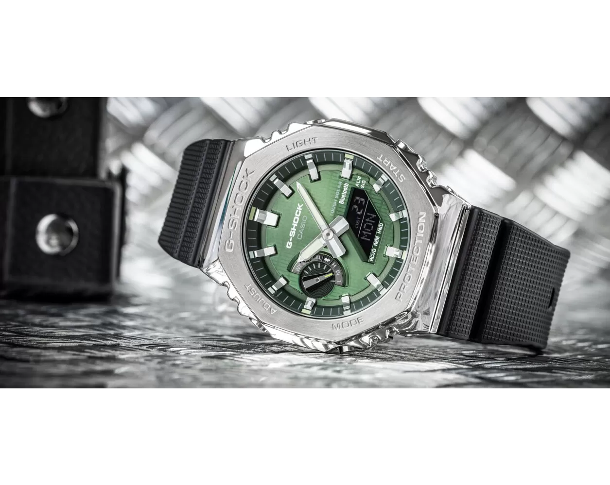 Kovovo odetá odvážnosť sa stretáva so sofistikovaným leskom v GBM-2100, ktorý poskytuje Smartphone Link cez Bluetooth® a nabíjací systém Tough Solar, to všetko v starostlivo spracovanom kovovom dizajne s ikonickým osemhranným rámčekom.