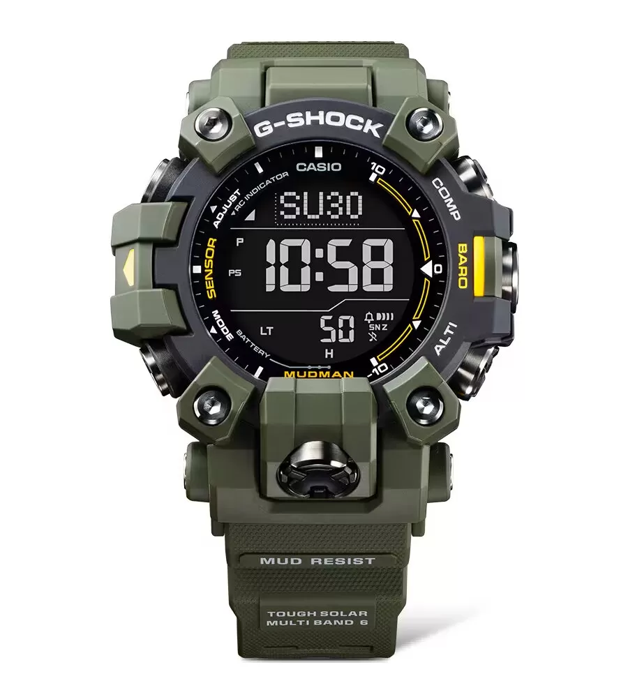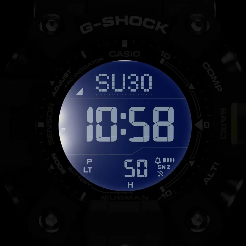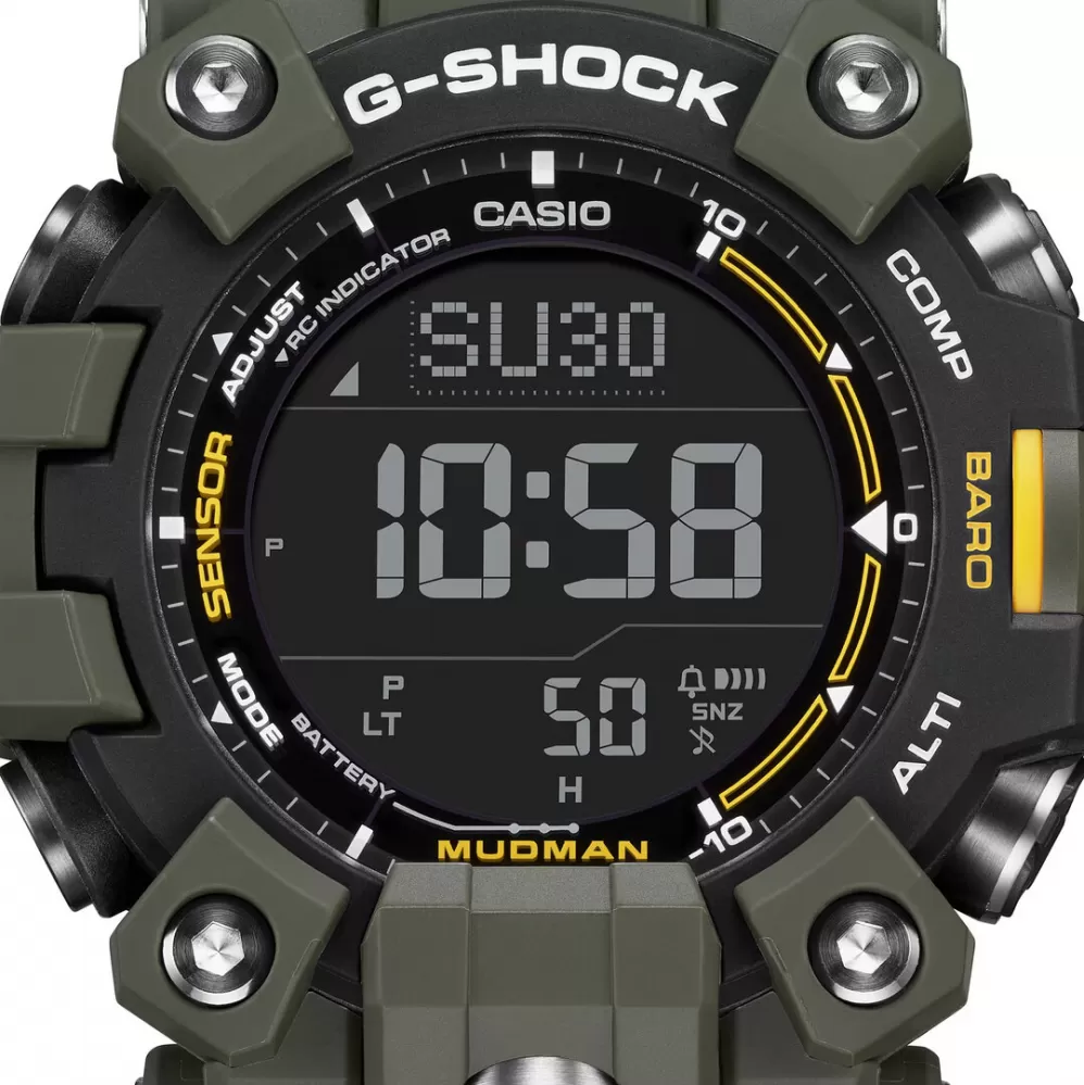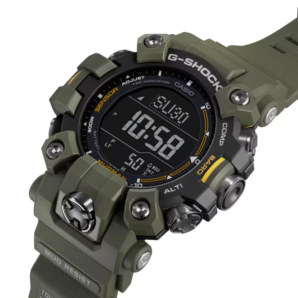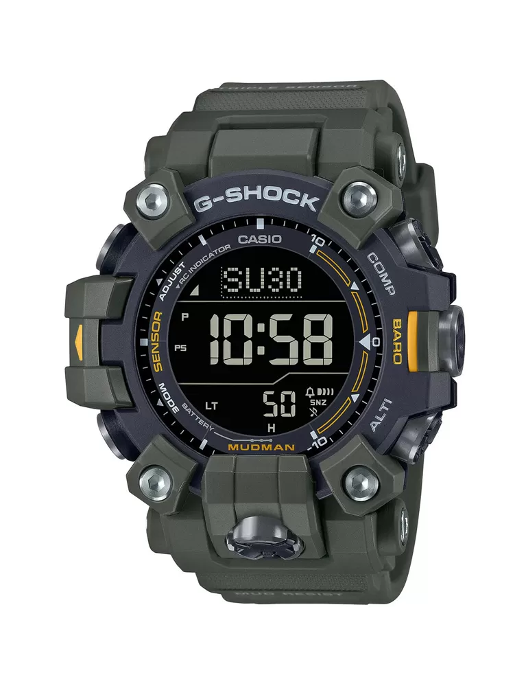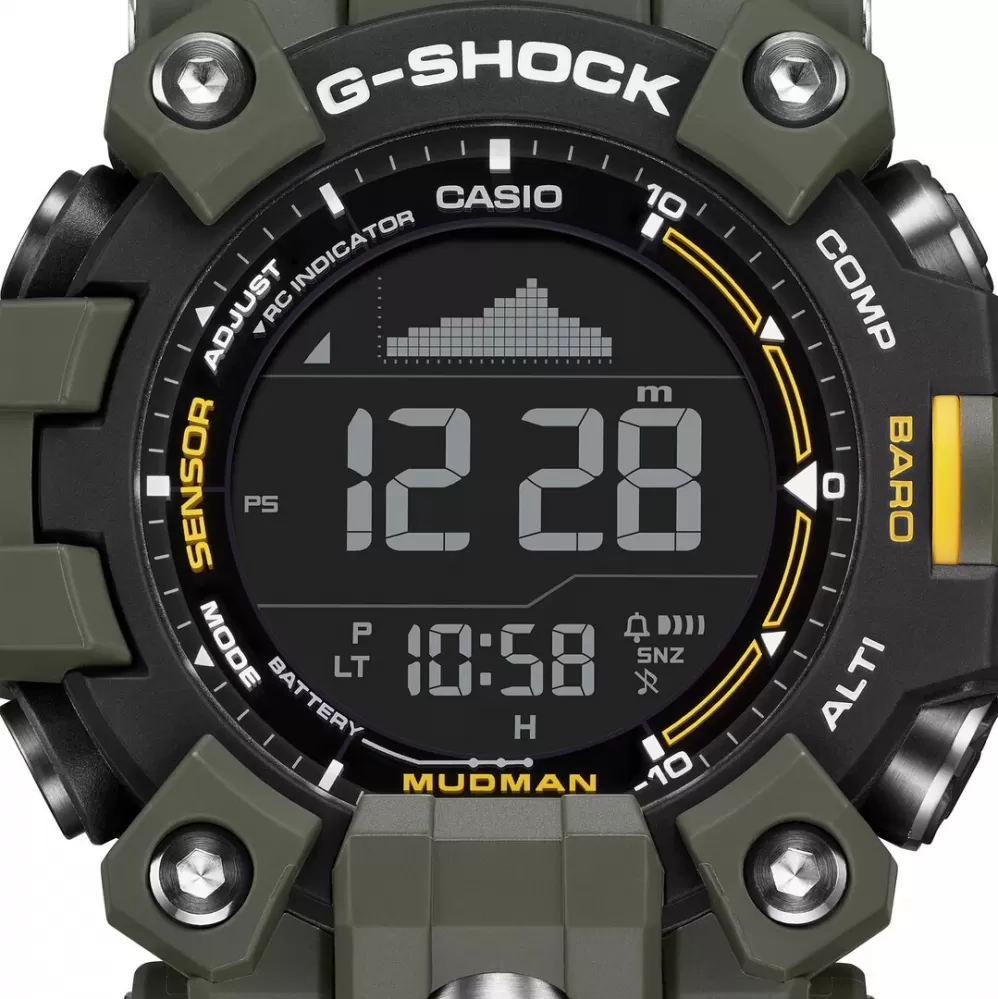 Digitální hodinky Casio G-Shock Mudman GW-9500-3ER mají základní funkce jako je datum, den v týdnu, stopky, budík a navíc užitečné funkce do přírody např. kompas ukazující magnetický sever, výškoměr s rozsahem –700 až 10,000 m, barometr se schopností záznamu tlaku 260 až 1100 hPa a teploměr měřící ve škále -10 - 60°C, čas východu a západu slunce a další.