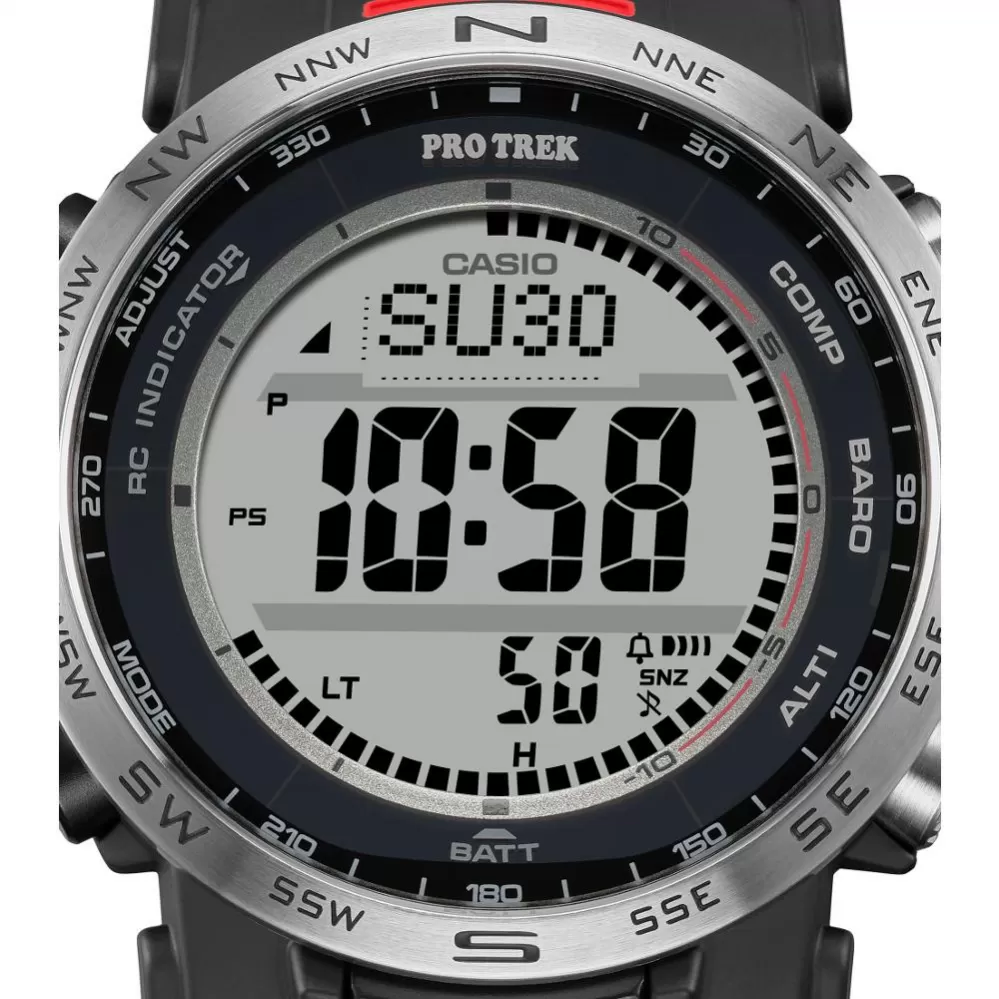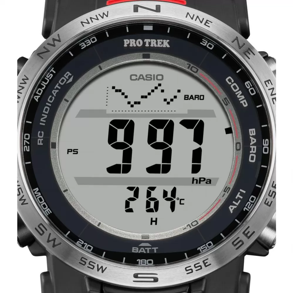 Hodinky sú chránené minerálnym sklíčkom a zobrazujú dátum, deň v týždni, stopky, budík, podsvietenie displeja. Hodinky vážia iba 45 gramov. Oproti ostatným modelom ProTrek majú hodinky menšie puzdro s priemerom 44,6 mm. Vodotesnosť tohto modelu je 100 m, s hodinkami teda môžete bez problémov plávať.