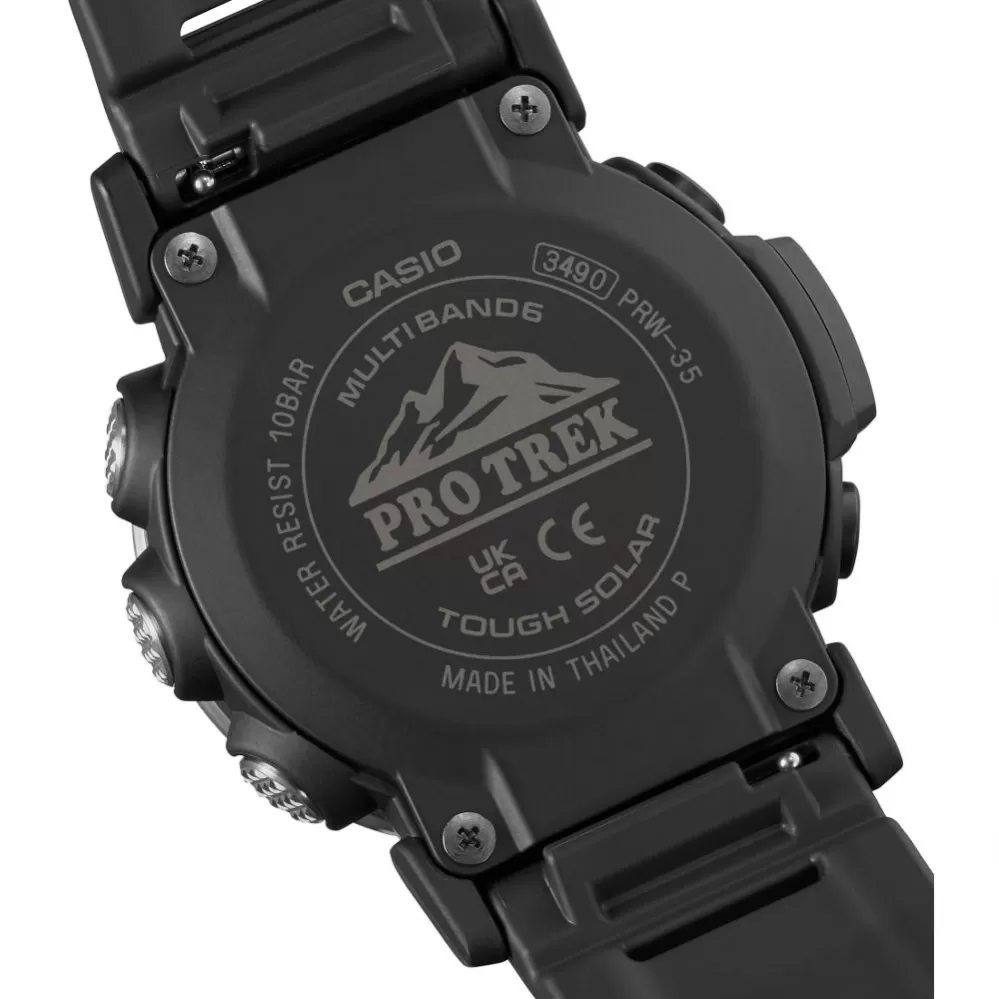 Pánske outdoorové hodinky Casio Protrek PRW-35-1AER z radu ProTrek vhodné na použitie v prírode. Hodinky sú na solárne napájanie a majú rádiom riadený čas. Vybrať si môžete z radu funkcií ako je napr. teplomer merací v rozmedzí -10 - 60°C, výškomer do 10 000 m, kompas, barometer, indikácia východu a západu slnka.