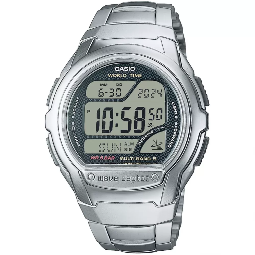 Túžite po hodinkách, ktoré sú rádiom riadené? Tento model bude pre vás ten pravý. Hodinky sú jednoduchého športového dizajnu s oceľovým remienkom a puzdrom vyrobené v kombinácii ocele a živice. Navyše ponúka ďalšie funkcie ako sú stopky, alarm, svetové časy, odpočítavacie stopky, automatický kalendár a veľmi obľúbené LED osvetlenie. Hodinky sú vybavené tónom tlačidiel, ale táto funkcia ide aj vypnúť.