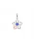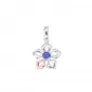 Romantický dámsky prívesok v tvare kvietky je vyrobený z bieleho štrnásťkarátového zlata - 585/1000 v lesklej povrchovej úprave a zdobený je jedným modrým zafírom uprostred kvietky. Jeden okvetný lístok kvietku je vo farbe ružového zlata.
