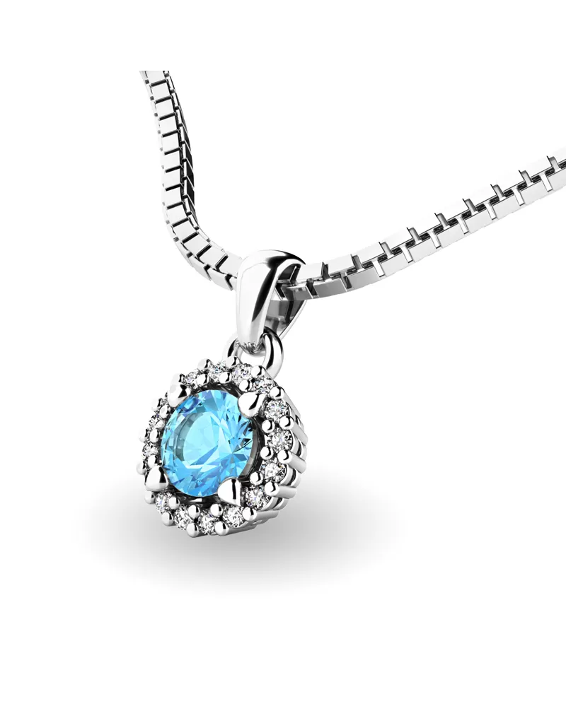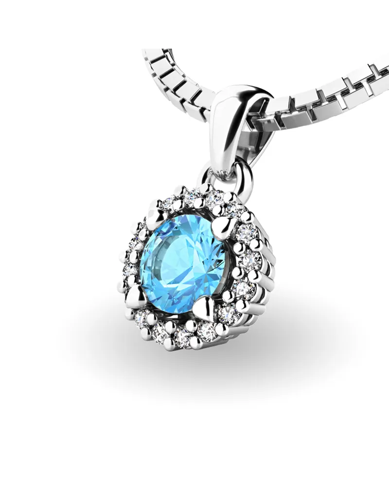 Nádherný přívěsek zdobený větším středovým topazem a menšími diamanty určitě potěší každou ženu. Přívěsek je vyrobený z bílého čtrnáctikarátového zlata - 585/1000 v lesklé povrchové úpravě. Vsazené diamanty jsou vybroušeny dokonalým briliantovým brusem, díky kterému dokonale odráží světlo a jejich brilance neuvěřitelné září z každého úhlu pohledu! Všechny kameny jsou pevně uchyceny krapnami. Vsazování diamantů a drahých kamenů provádějí naši nejzkušenější mistři zlatníci ručně pod mikroskopem s přesností na 0,01mm a proto nehrozí vypadnutí kamínků jako to bývá u strojně vyráběných náušnic. Celé náušnice působí dokonalým a luxusním dojmem!