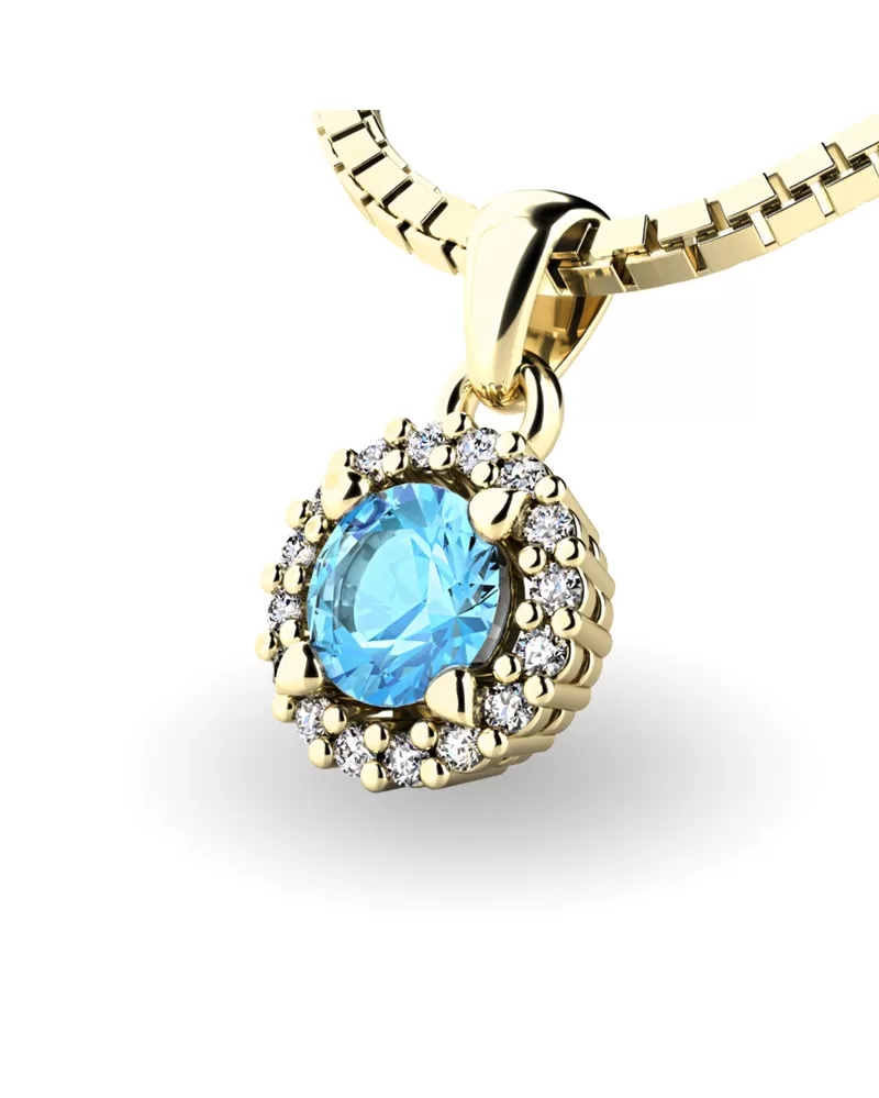 Nádherný přívěsek zdobený větším středovým topazem a menšími diamanty určitě potěší každou ženu. Přívěsek je vyrobený ze žlutého čtrnáctikarátového zlata - 585/1000 v lesklé povrchové úpravě. Vsazené diamanty jsou vybroušeny dokonalým briliantovým brusem, díky kterému dokonale odráží světlo a jejich brilance neuvěřitelné září z každého úhlu pohledu! Všechny kameny jsou pevně uchyceny krapnami. Vsazování diamantů a drahých kamenů provádějí naši nejzkušenější mistři zlatníci ručně pod mikroskopem s přesností na 0,01mm a proto nehrozí vypadnutí kamínků jako to bývá u strojně vyráběných náušnic. Celé náušnice působí dokonalým a luxusním dojmem!