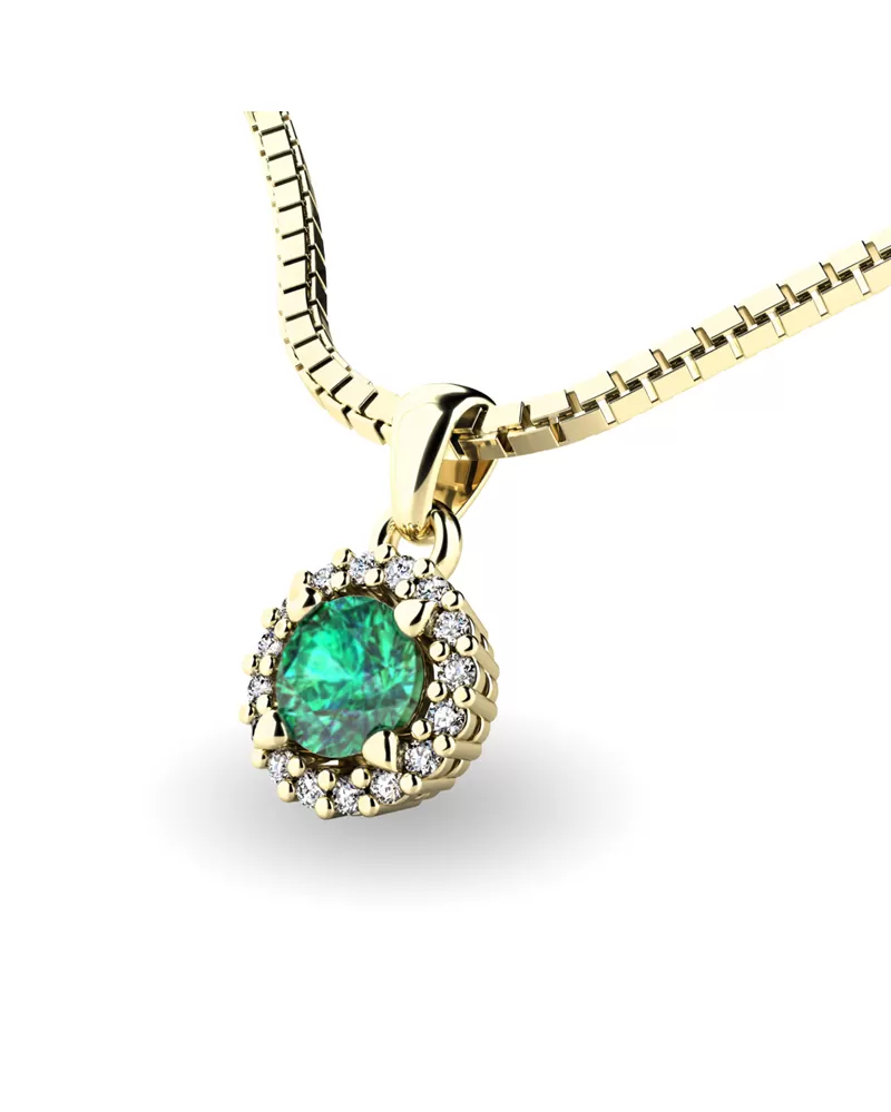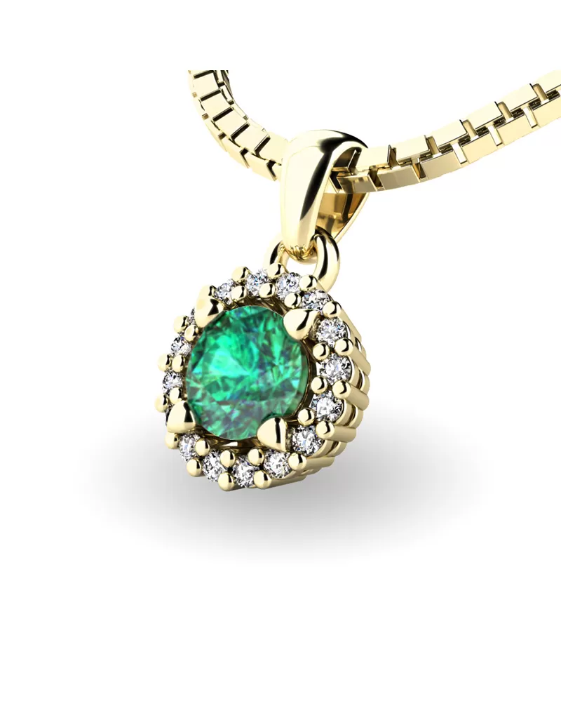 Nádherný přívěsek zdobený větším středovým smaragdem a menšími diamanty určitě potěší každou ženu. Přívěsek je vyrobený ze žlutého čtrnáctikarátového zlata - 585/1000 v lesklé povrchové úpravě. Vsazené diamanty jsou vybroušeny dokonalým briliantovým brusem, díky kterému dokonale odráží světlo a jejich brilance neuvěřitelné září z každého úhlu pohledu! Všechny kameny jsou pevně uchyceny krapnami. Vsazování diamantů a drahých kamenů provádějí naši nejzkušenější mistři zlatníci ručně pod mikroskopem s přesností na 0,01mm a proto nehrozí vypadnutí kamínků jako to bývá u strojně vyráběných náušnic. Celé náušnice působí dokonalým a luxusním dojmem!