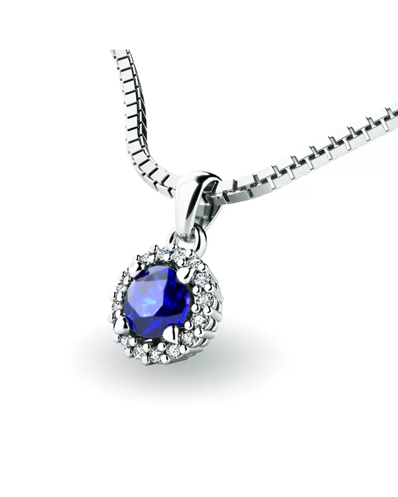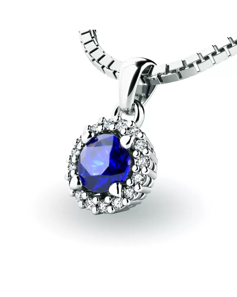 Nádherný přívěsek zdobený větším středovým safírem a menšími diamanty určitě potěší každou ženu. Přívěsek je vyrobený z bílého čtrnáctikarátového zlata - 585/1000 v lesklé povrchové úpravě. Vsazené diamanty jsou vybroušeny dokonalým briliantovým brusem, díky kterému dokonale odráží světlo a jejich brilance neuvěřitelné září z každého úhlu pohledu! Všechny kameny jsou pevně uchyceny krapnami. Vsazování diamantů a drahých kamenů provádějí naši nejzkušenější mistři zlatníci ručně pod mikroskopem s přesností na 0,01mm a proto nehrozí vypadnutí kamínků jako to bývá u strojně vyráběných náušnic. Celé náušnice působí dokonalým a luxusním dojmem!