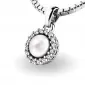 Nádherný přívěsek zdobený perlou a diamanty určitě potěší každou ženu. Perla se bude skvěle vyjímat ve vašem dekoltu a zářivé diamanty umocňují dokonalost přívěsku. Vsazování diamantů provádějí naši nejzkušenější mistři zlatníci ručně pod mikroskopem s přesností na 0,01mm a proto nehrozí vypadnutí kamínků jako to bývá u strojně vyráběných přívěsků. Přívěsek je vyrobený z bílého čtrnáctikarátového zlata - 585/1000 v lesklé povrchové úpravě.