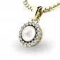 Nádherný přívěsek zdobený přírodní bílou perlou a diamanty určitě potěší každou ženu. Perla se bude skvěle vyjímat ve vašem dekoltu a zářivé diamanty umocňují dokonalost přívěsku. Vsazování diamantů provádějí naši nejzkušenější mistři zlatníci ručně pod mikroskopem s přesností na 0,01mm a proto nehrozí vypadnutí kamínků jako to bývá u strojně vyráběných přívěsků. Přívěsek je vyrobeny ze žlutého čtrnáctikarátového zlata - 585/1000 v lesklé povrchové úpravě.