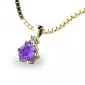 Tento krásny prívesok je vyrobený zo žltého štrnástich karátového zlata s rýdzosťou 585/1000 s lesklou povrchovou úpravou. Prívesok je vysadený jedným veľkým ametystom v krásnej fialovej farbe a jedným menším diamantom. Oba kamene sú brúsené do briliantového výbrusu, ktorý zaručuje maximálny lesk kameňov a celého šperku.