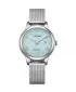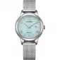 Tieto hodinky sú vybavené technológiou Eco-Drive, ktorá využíva svetlo na pohybu pohybu. Puzdro je vyrobené z nehrdzavejúcej ocele v okrúhlom tvare s priemerom 32 mm. Dial je jemný, s kombináciou rímskych číslic a jednoduchých indexov, naladených na pastelovú modrú. Diama chráni minerálne sklo. Vodotesnosti majú hodinky 100 m, čo umožňuje napríklad plávanie.