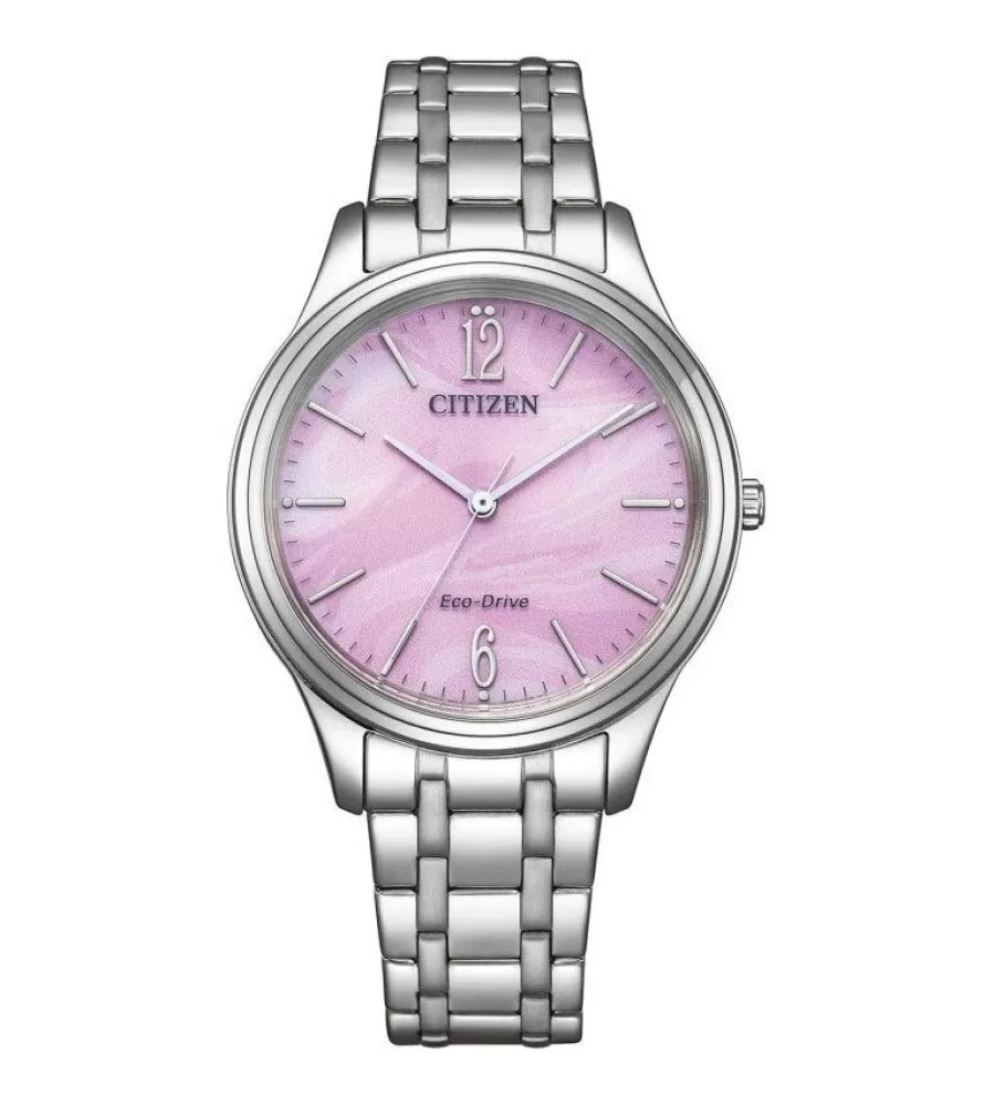 Tento model je poháňaný ekologickým pohonom, čo znamená, že používa svetlo ako zdroj energie a nie je potrebné meniť batériu. Dial je ružový s kombináciou arabských číslic a jednoduchých indexov, rúk a prvkov sú striebro. Puzdro je vyrobené z nehrdzavejúcej ocele, ktorá je okrúhla s priemerom asi 34 mm. Sklo nad číselníkom je minerálne a vodotesné je 50 m, čo je dostatočné na neformálne opotrebenie.