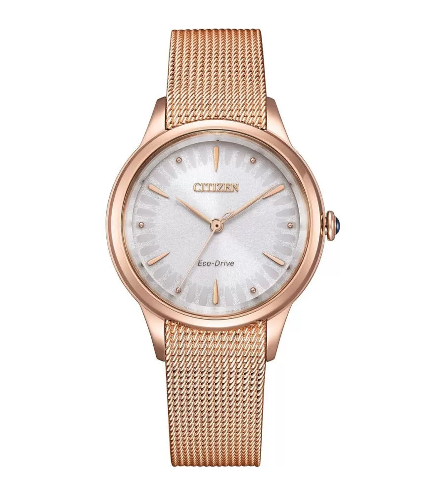 Tieto dámske hodinky sú poháňané ekologickým pohonom, ktorý využíva svetlo ako zdroj energie. Kryt je vyrobený z nehrdzavejúcej ocele s priemerom približne 32 mm. Dialca má odtieň z perly v odtieni šedej farby a je doplnený jednoduchými funkciami a bodkami namiesto indexov hodín. Vodotesný model je 50 m, čo znamená, že hodinky vydržia striekajúcu vodu, umývanie rúk alebo dážď, ale nie sú určené na plávanie. Sledujte náramok je v milánskom štýle s jemnou štruktúrou.