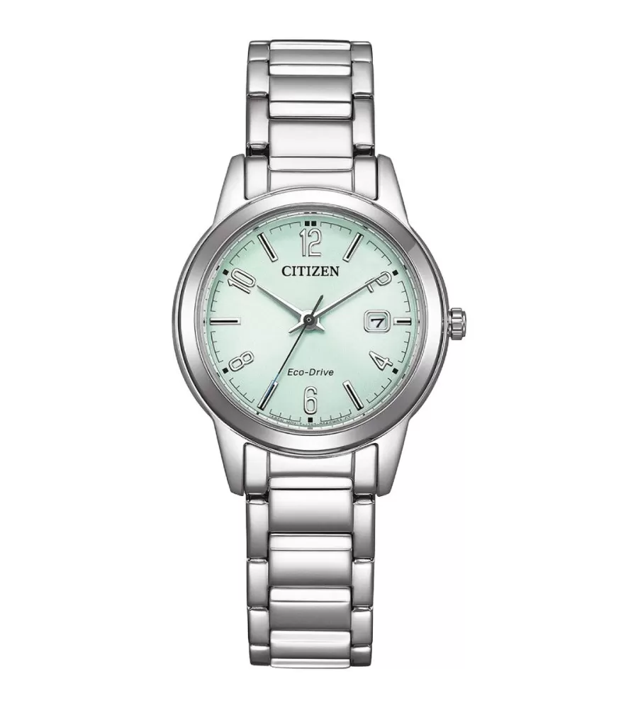 Model Citizen FE1241-71X sú elegantné dámske hodinky s jemným a nadčasovým dizajnom. Puzdro aj náramok sú vyrobené z nerezovej ocele v striebornom prevedení, vďaka čomu pôsobia univerzálne a hodí sa ku každodennému aj formálnejšiemu oblečeniu. Hodinky majú menší priemer okolo 29 mm, takže dobre sedia na užšom zápästí. Ciferník v zelenej farbe so sunburst efektom dodáva modelu moderný a ľahko originálny vzhľad, pričom zostáva prehľadný a ľahko čitateľný. Nechýba ani praktické zobrazenie dátumu na pozícii tretej hodiny.