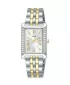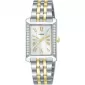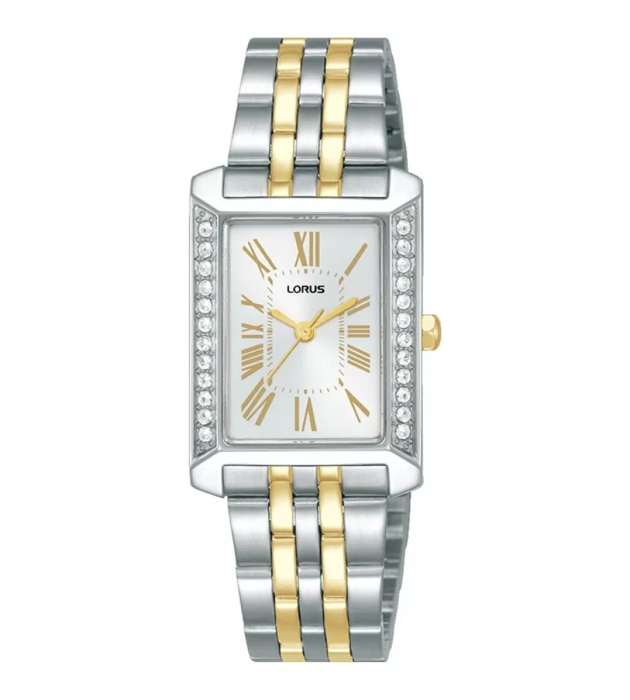 Dámske hodinky Lorus RG235YX9 zaujmú elegantným obdĺžnikovým puzdrom z nerezovej ocele, ktoré je po stranách jemne zdobené trblietavými kamienkami a dodáva celku luxusný vzhľad. Svetlý analógový ciferník s rímskymi číslicami v zlatom tóne pôsobí veľmi jemne a prehľadne, pričom je chránený odolným minerálnym sklíčkom. Dvojfarebný oceľový ťah v strieborno-zlatej kombinácii zaisťuje pohodlné nosenie a elegantný dojem. Hodinky sú osadené spoľahlivým quartzovým strojčekom a disponujú vodotesnosťou 5 ATM, ktorá je vhodná na bežný kontakt s vodou, napríklad pri umývaní rúk či sprchovaní. Vďaka svojmu nadčasovému dizajnu sú ideálnou voľbou pre každodenné nosenie aj slávnostnejšie príležitosti.