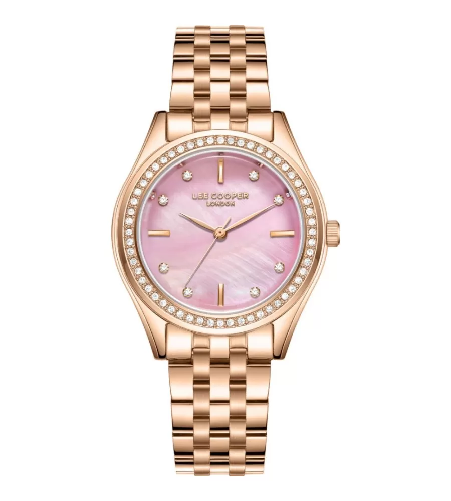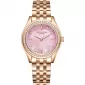 Tento model je dámske náramkové hodinky s pohybom batérie. Majú okrúhle kovové puzdro s priemerom 33 mm v ružovom dizajne zlata a kovovým ťahom v rovnakom odtieni. Ružový číselník je vybavený dvanástimi jednoduchými indexmi a je chránený minerálnym sklom. Hodinky sú vodotesné až do 30 atm, takže počas normálneho používania môžu vydržať prach a postriekať vodu.