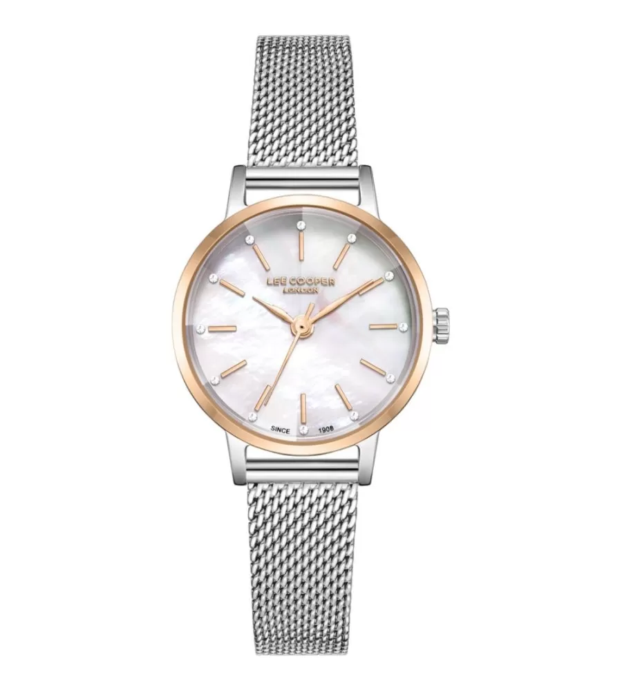 LC082411.520 sú žien Lee Cooper náramkové hodinky. Majú okrúhle kovové puzdro v ružovej farbe s priemerom 28 mm. Dial je perla a je chránený minerálnym sklom. Hodinky sú poháňané kremenným strojom napájaným batériou. Milanský remienok, kovový štýl dodáva hodinám elegantný vzhľad. Sú odolné voči bežnému kontaktu s vodou, napríklad pri umývaní rúk. Tieto hodinky sú vhodné pre ženy, ktoré hľadajú kombináciu štýlu a praktických funkcií.