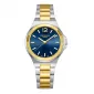 Dámske náramkové hodinky sú vyrobené z kvalitného kovu, ktorý je miestami upravený PVD povrchovou úpravou v žltom zlate. Okrúhle puzdro s priemerom 33 mm je odolné voči vlhkosti. Zvýrazňuje ho prepracovaný rám v prednej časti. Decentne riešený ciferník vás prekvapí modrou farbou, ktorá pri každom vašom pohybe mení tóny jemných odtieňov. Hodinky sú zaistené bezpečnostnou sponou.