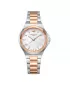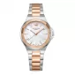 Dámske náramkové hodinky sú vyrobené z kvalitného kovu, ktorý je na niektorých miestach upravený PVD povrchovou úpravou vo farbe ružového zlata. Okrúhle puzdro s priemerom 33 mm je odolné voči vlhkosti. Zvýrazňuje ho prepracovaný rám v prednej časti. Ciferník v decentnom dizajne vás prekvapí perleťou, ktorá pri každom pohybe mení tóny jemných odtieňov. Hodinky sú zaistené bezpečnostnou sponou.