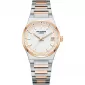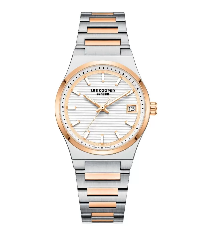 Dámske náramkové hodinky v klasickom dizajne sú vyrobené z kvalitného kovu. Kov je miestami oparený s PVD povrchovou úpravou vo farbe ružového zlata. Hodinky majú hladké puzdro, ktoré dopĺňa štruktúrovaný ciferník a dátumovka, umiestnená na pozícii troch hodín. Hodinky sú vodotesné a vhodné na každodenné nosenie.